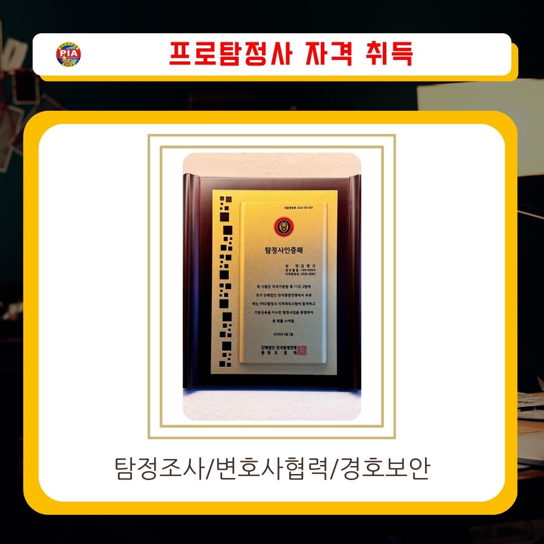 합법적인 기관은 반드시 사업자 등록증을 구비하고 있습니다. 그리고 pia사설탐정 자격증도 포함하고 있으니 사무실에 방문하여 자격증과 등록증이 확실히 있는지 꼭 확인하시기 바랍니다.